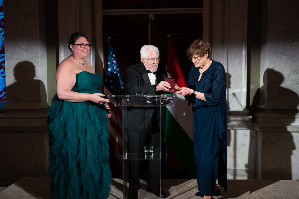 The highlight of the evening was the presentation of awards. Dr. Charles Simonyi received the Spirit of America 250 Award, presented by Edith K. Lauer, Chair Emerita of the Hungarian American Coalition. The Award recognized his pioneering achievements in information technology, commitment to space exploration, and generous support of Coalition projects in Hungarian education and research. In his remarks, Dr. Simonyi pointed out that “the future will belong to societies that treat knowledge as a strategic resource. Hungary has a remarkable scientific tradition, and the Hungarian American community continues to show how talent and perseverance can shape the world.”